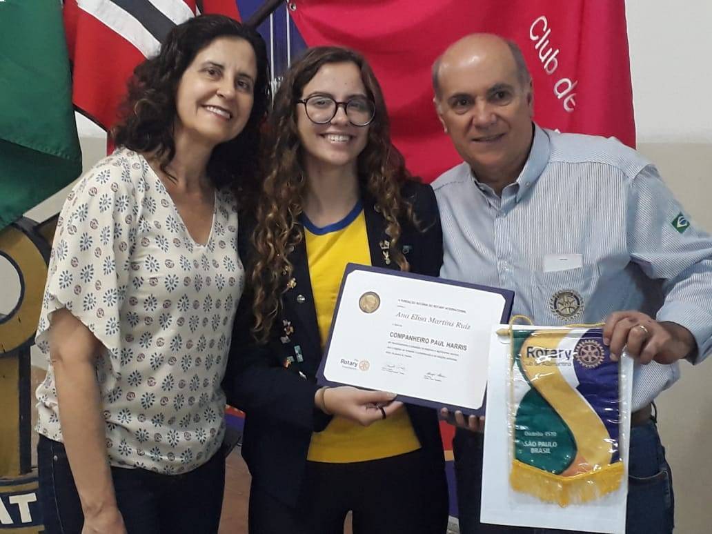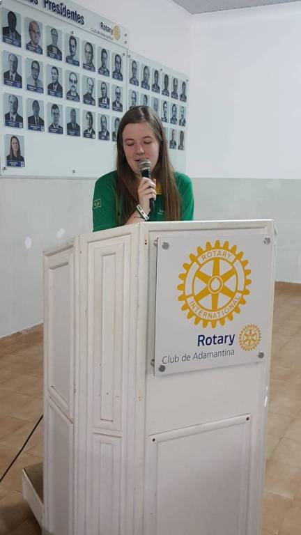 Em nossa reunião ordinária de 13/08/2019, sob o lema "O Rotary Conecta o Mundo", presidida pelo nosso companheiro Paul Bruning, tivemos a apresentação dos intercambistas Adel (França) e Olivia (EUA). Tivemos também a grata satisfação de entregar à jovem Ana Elisa, filha do companheiro Ananias/Nádia Ruiz, o Reconhecimento Paul Harris. Ana vai para o Canadá no final de semana e levará na bagagem muito para falar do Brasil e de Adamantina.