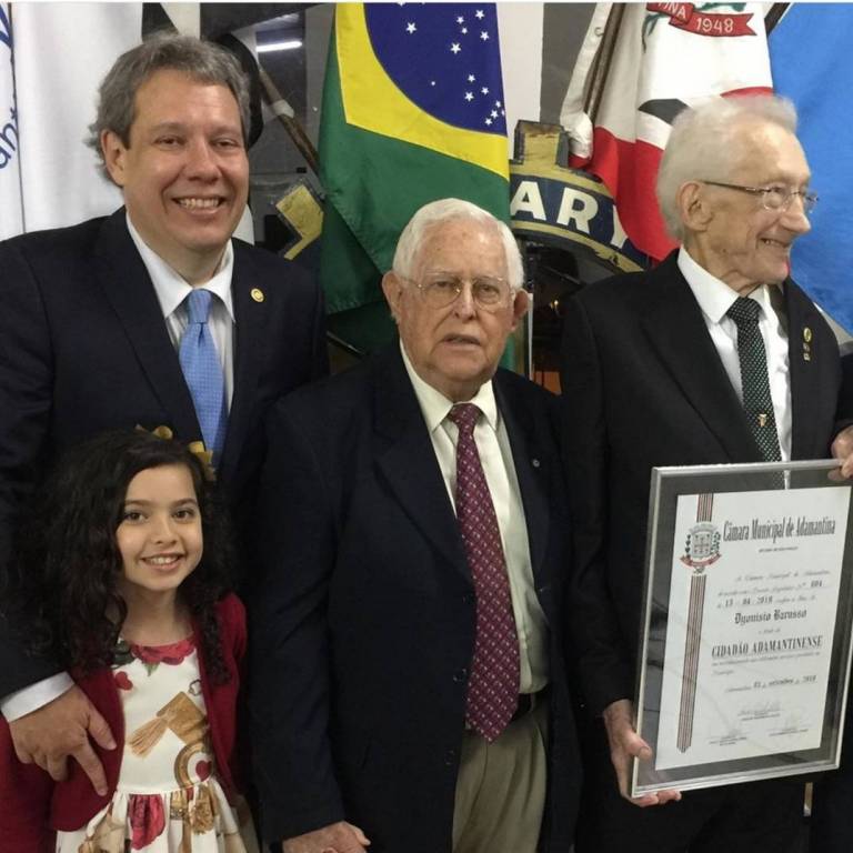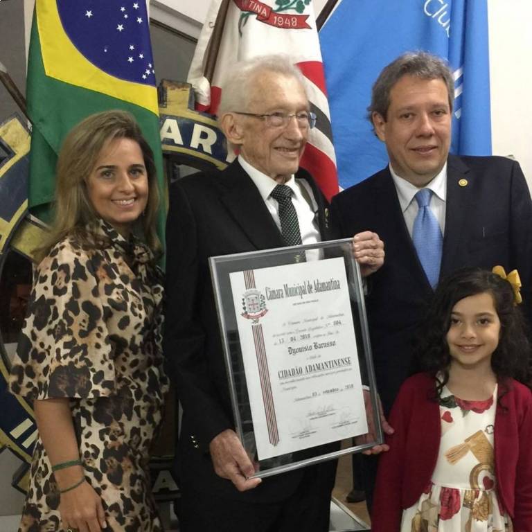 Durante a reunião festiva de 03/09/2019, presidida pelo companheiro Paul Bruning, sob o lema "O Rotary Conecta o mundo", tivemos momentos de muita emoção, alegria e satisfação. Nosso companheiro Dyonísio Barusso, associado ao Rotary Club de Adamantina a mais de 44 (quarenta e quatro) anos, recebeu em cerimônia especial realizada na sede do clube, o título de "Cidadão Adamantinense" pela Câmara Municipal de Adamantina.
