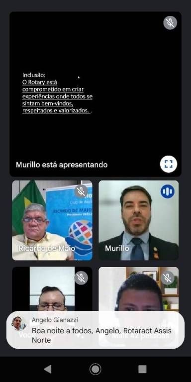 Sob a coordenação do ROTARY CLUB DE ASSIS-NORTE, clube anfitrião, foi realizado no dia 22 de novembro de 2.021, a REUNIÃO INTER-CLUBES, com a participação dos Rotary Clubs: Assis-Norte; Marilia-Leste;Marilia-Pioneiro; Osvaldo Cruz, Junqueiropolis e Piratininga, as 20:00 horas, com a exposição do TEMA: " O ROTARY QUE QUEREMOS, PANORAMA ATUAL E FUTURO ", ministrado pelo Governador Eleito 2022-23 Dr. Murilio Alvares Alvez, associado do Rotary Club de Piratininga.