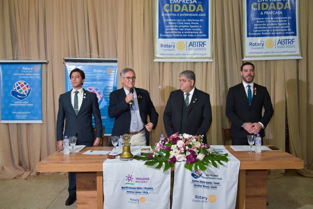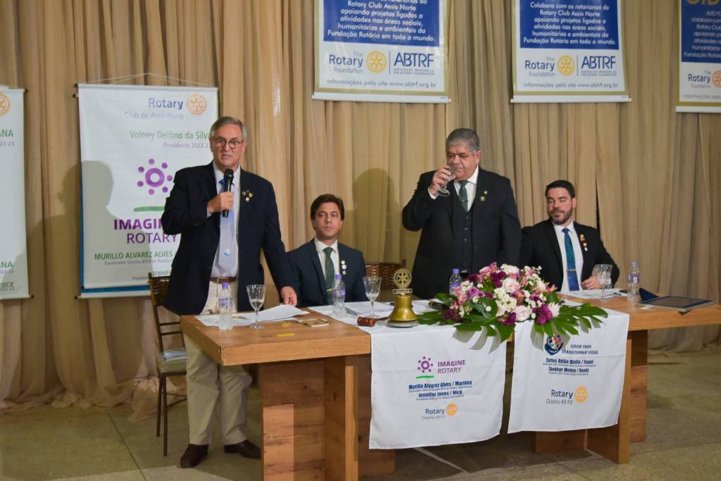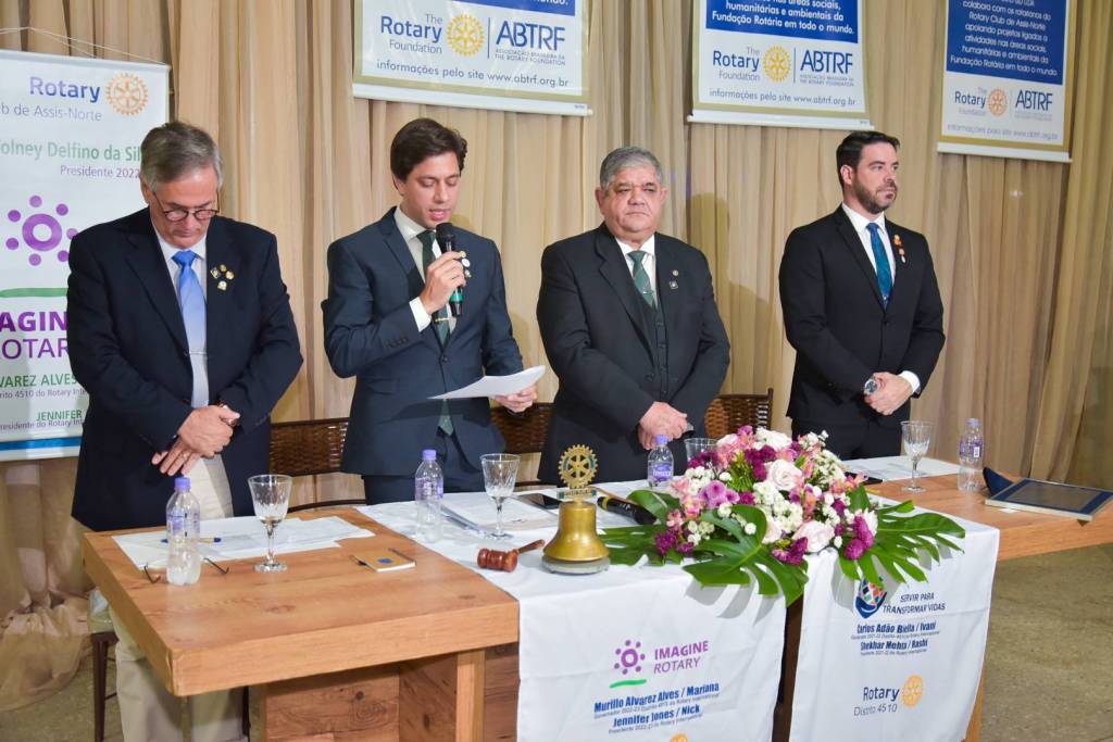 "Com certeza os trabalhos que o RC Assis Norte vem realizando ao longo destes 50 anos de existencias são importantes para a comunidade local e para o mundo, e temos certeza que neste proximo ano rotario 22-23, será contemplado com exito e dinamismo, e quem tem a ganhar é a comunidade de Assis. Parabens ao presidente 21-22 Ricardo de Maio Bermejo pelos trabalhos prestados neste ano passado 21-22, e desejo sucesso ao presidente 22-23 Volney Delfino da Silva neste novo ano rotario. Imagine o Rotary!" Citou o Governador 2022-23 Murillo Alvarez Alves - Distrito 4510.