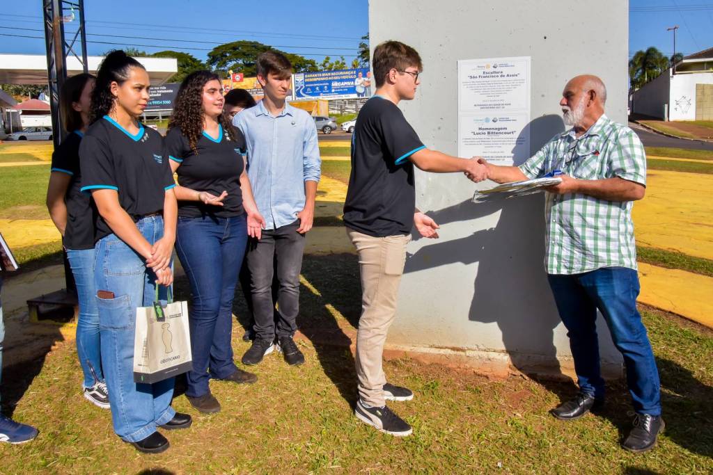 O Interact de Assis do Vale homenageou o grande artista plástico brasileiro reponsável pela emblemática escultura de São Francisco de Assis, Lucio Bittencourt, com uma placa informativa e condecorativa localizada de baixo da obra.A homenagem, que contou com a participação do próprio Lucio, aconteceu no dia 1º de Julho, aniversário da cidade de Assis.O artista retribuiu com presentes e com um lindo discurso de agradecimento.