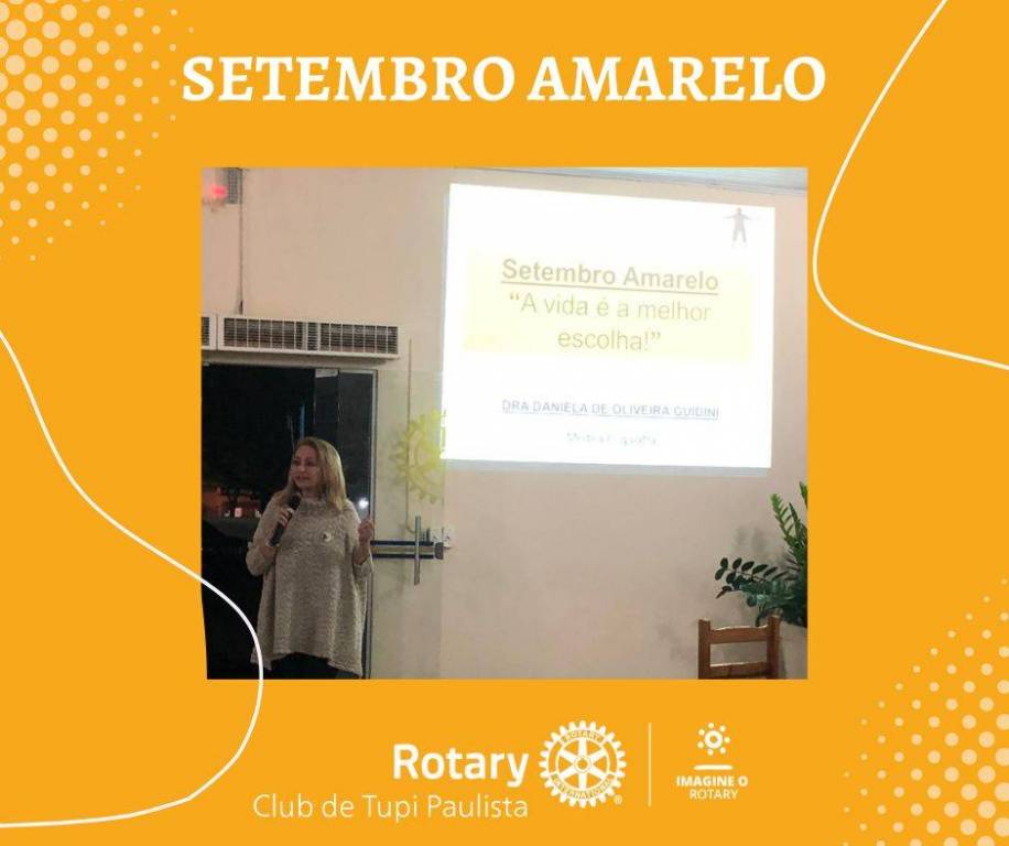 Na reunião ordinária do dia 15 setembro o Rotary Club de Tupi Paulista recebeu a médica psiquiatra Daniela Guidini para uma palestra sobre a Campanha do Setembro Amarelo, mês voltado à Valorização da Vida.