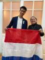 Aeden Strater intercambiário da Holanda recebendo a flamula do RCPP Rosa dos Ventos da oficial do YEP Rita Krasucki e da comp. Sumaia Zakir Pereira na casa da sua família brasileira Ricardo e Tataina Sonvezzo e do nosso intercambiário Enrico Sonvezzo dia 26-08-22.