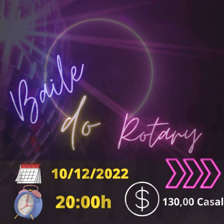 O Rotary Club de Pacaembu, para encerrar o ano de 2022, CONVIDA a TODOS (as), para o GRANDE BAILE DO ROTARY! 🕺🪩💃