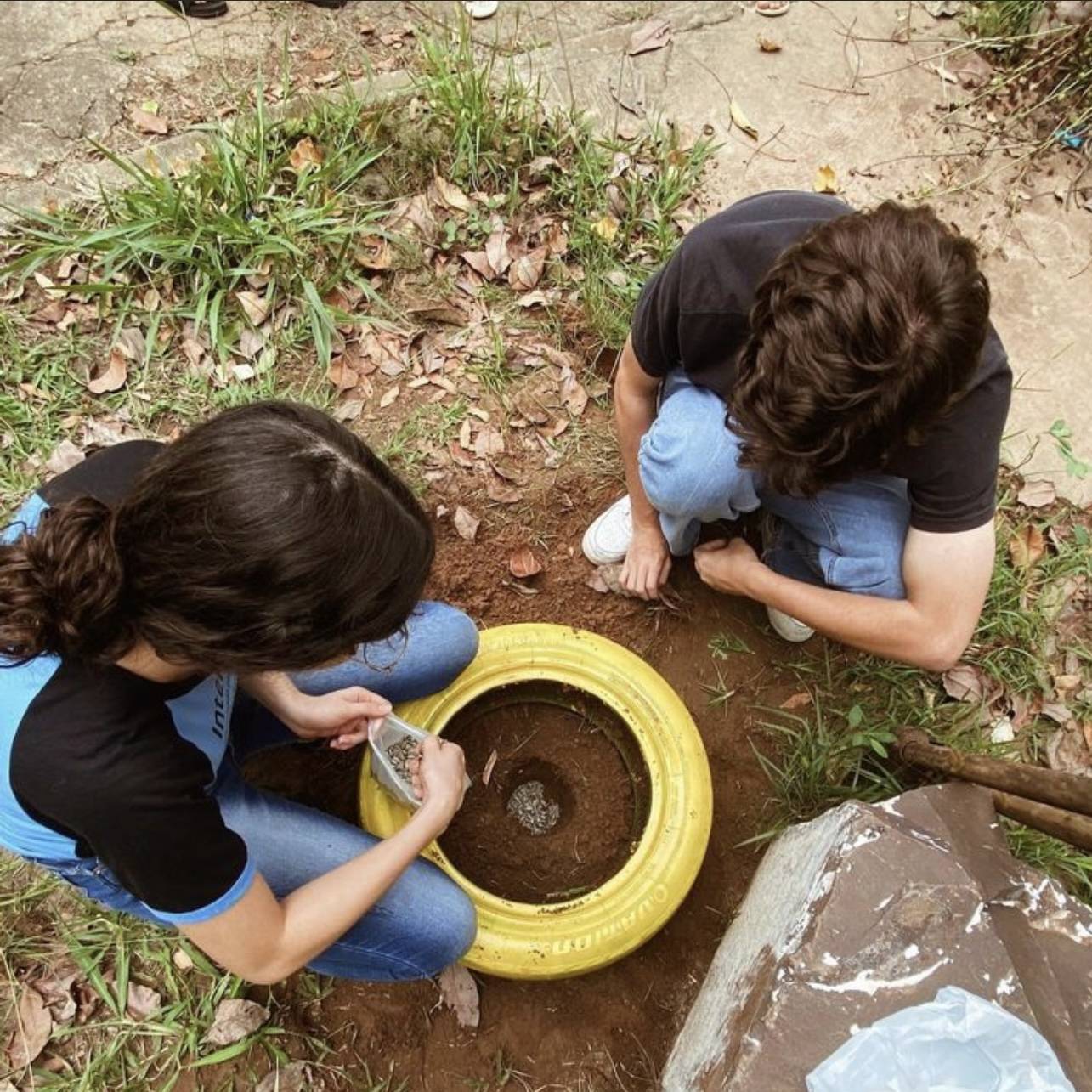 Como Projeto relâmpago proposto pelo @interact_4510 , que se consiste em reaproveitar um material reciclável transformando algo através dele, aproveitamos que estamos no mês do Setembro Amarelo(mês de prevenção ao suicídio) e plantamos um girassol dentro de um pneu que pintamos da cor amarela.