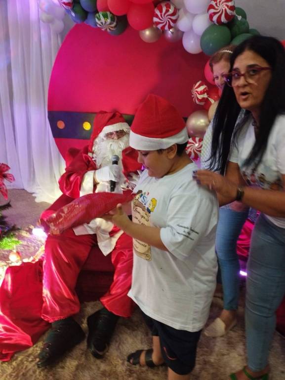 O ROTARY CLUB DE ASSIS-NORTE - gestão 2022 -23, realizou no dia 07 de dezembro de 2022, na séde da Casa da Amizade de Assis, o tradicional NATAL DO SIM - AO DEFICIENTE, que contou com a participação dos alunos e assistidos do projeto SIM AO DEFICIENTE. O presidente do SIM, Sr. Marcos e esposa esteve presente, juntamente com todos os seus colaboradores, professores e profissionais que atuam na entidade. O Rotary Club de Assis-Norte, realizou a atividade, e contou com a coordenação e organização da Sra. SOLANGE NEGRI BERMEJO, contando ainda com os voluntarios: (Som e iluminação e painel de LED) DOADO pelo Luciano Pazinato dos Santos; (Enfeite da Festa e decoração) doados pela MARCINHA FESTAS E DECORAÇÃO; (Alimentação e salagados) Confeccionados pelo casal Valmir de Almeida e esposa Elenita. Os companheiros do clube estiveram presente para prestigiar a festa, onde o Rotary Club de Assis-Norte representado pelo seu presidente Volney Delfino da Silva, entregou através do papai noel, o Cp. JORGE GEFE DE CARVALHO os presentes adquiridos com as promoções realizadas do clube (Feijoada com pagode) a todas os alunos e assistidos do PROJETO SIM, que tiveram a oportunidade de receber cada um o seu presente de FELIZ NATAL. Rotary Club de Assis-Norte- Gestão 2022-23