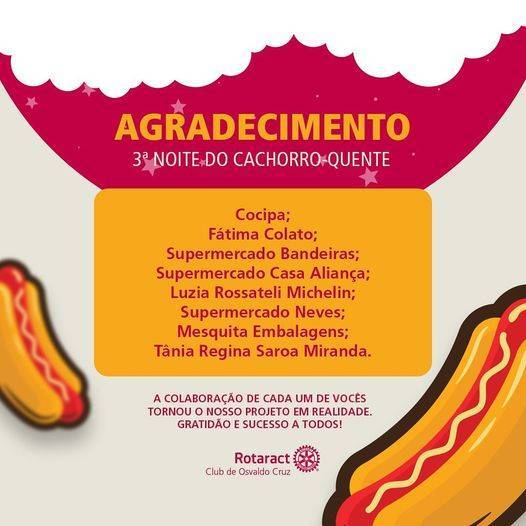 O Rotaract Club de Osvaldo Cruz realizou a 3ª Noite do Cachorro Quente para arrecadar recursos em prol de projetos do clube