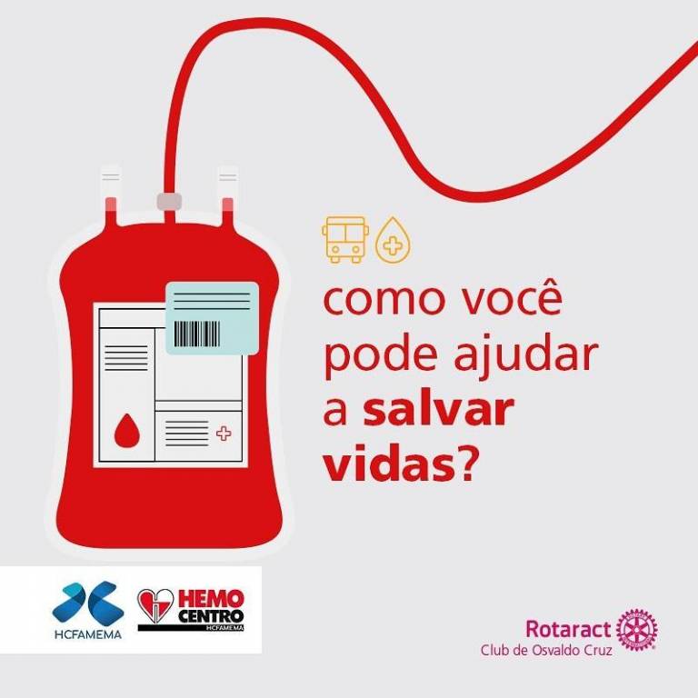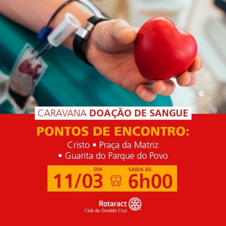 Neste último sábado, dia 11, o Rotaract Club de Osvaldo Cruz preparou uma caravana para levar os doadores de sangue de Osvaldo Cruz e região, para o Hemocentro de Marilia, que abastece os hospitais e Santas Casas da região, inclusive Osvaldo Cruz. A prefeitura em parceria com o clube disponibilizou um ônibus para os interessados em doar sangue, os interessados puderam entrar no Instagram do clube que é @rotaract.ocz, onde havia o link que direcionava para um grupo no WhatsApp, onde estava disponível todas as informações, inclusive sobre restrições aos possíveis doadores.