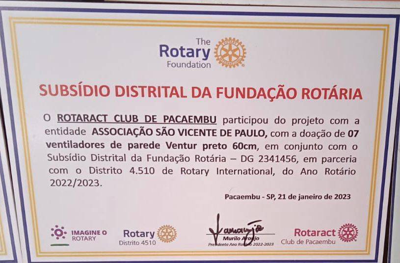 Na gestão 2022-23 através de projetos de finanças e em contrapartida das doações advindas da fundação rotária.