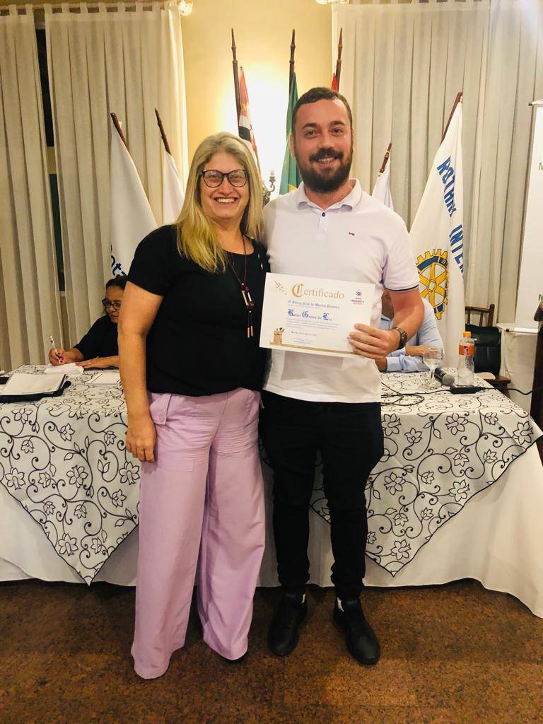 O Rotary Club de Marília Pioneiro aproveitou a ocasião para entregar ao associado Rafael do Rotaract Club Marília Pioneiro um certificado de reconhecimento pelas palestras apresentadas no evento.