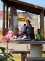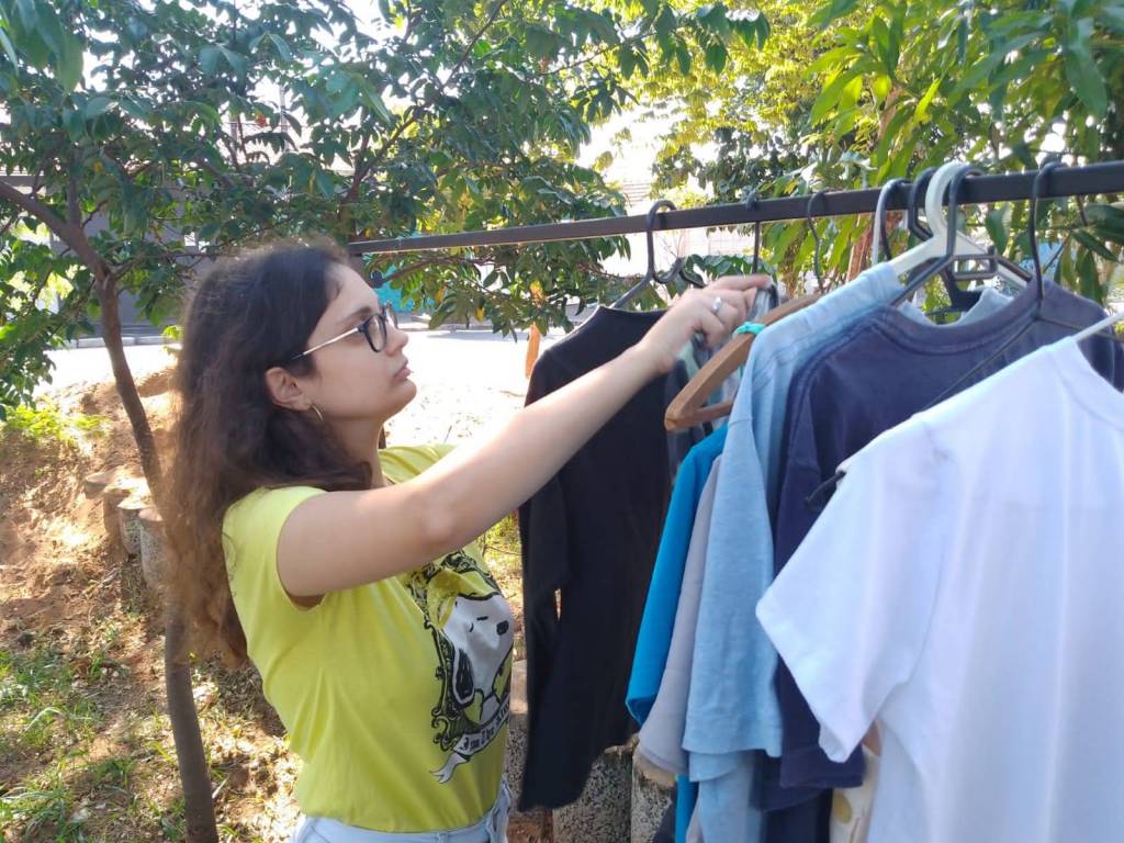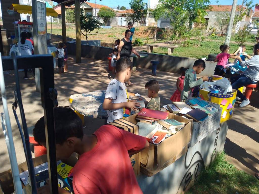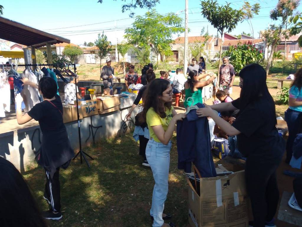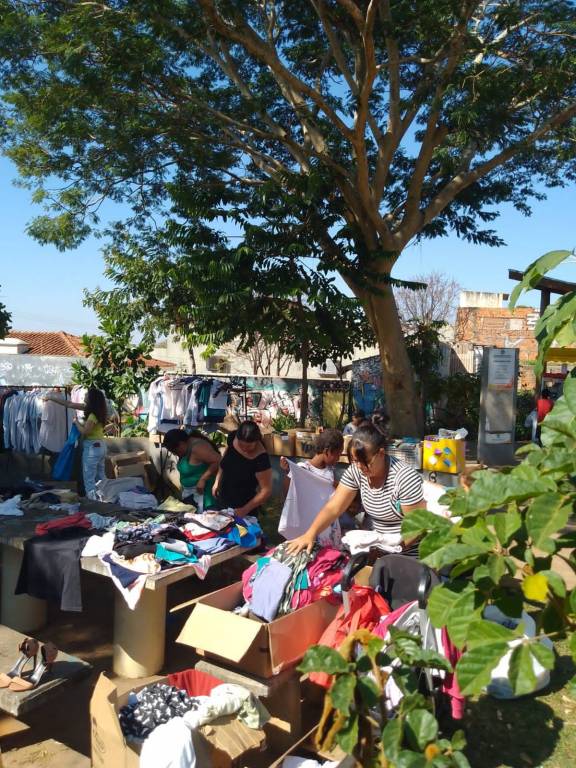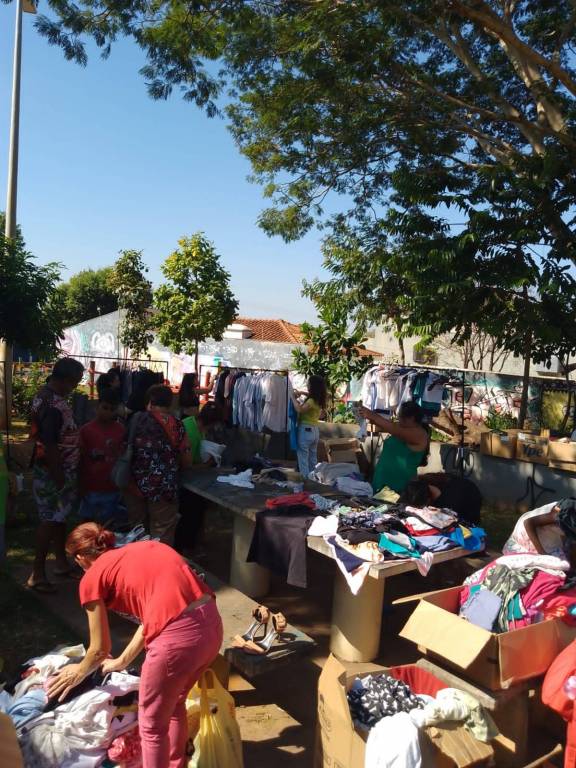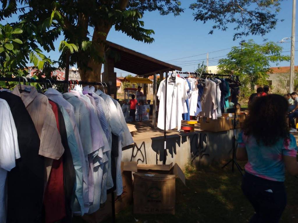 Foram distribuídos roupas, sapatos e livros remanescentes da 3ª edição do Bazar Solidário de forma gratuita a população, além de pipoca e algodão doce para crianças e moradores da região.