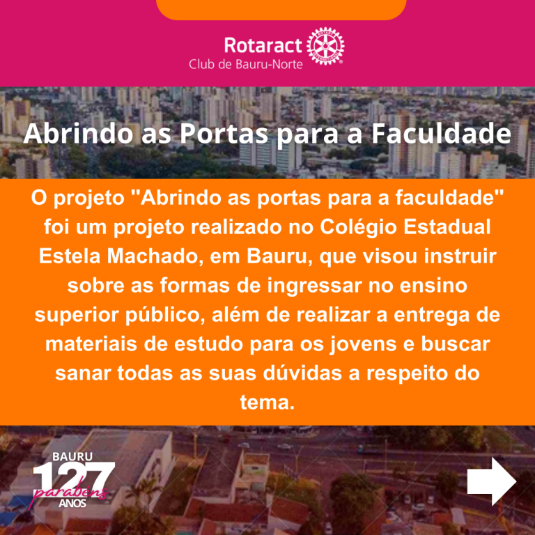 Hoje, dia 1° de agosto, comemora-se o aniversário da cidade em que nasceu o Rotaract Club de Bauru-Norte.