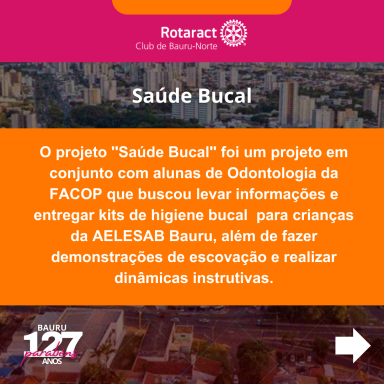 Para comemorar esse dia tão especial, nossa equipe de Imagem Pública montou um post no Instagram felicitando a cidade e relembrando 3 projetos concluídos com sucesso no último ano de gestão rotária: 2022/2023.