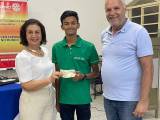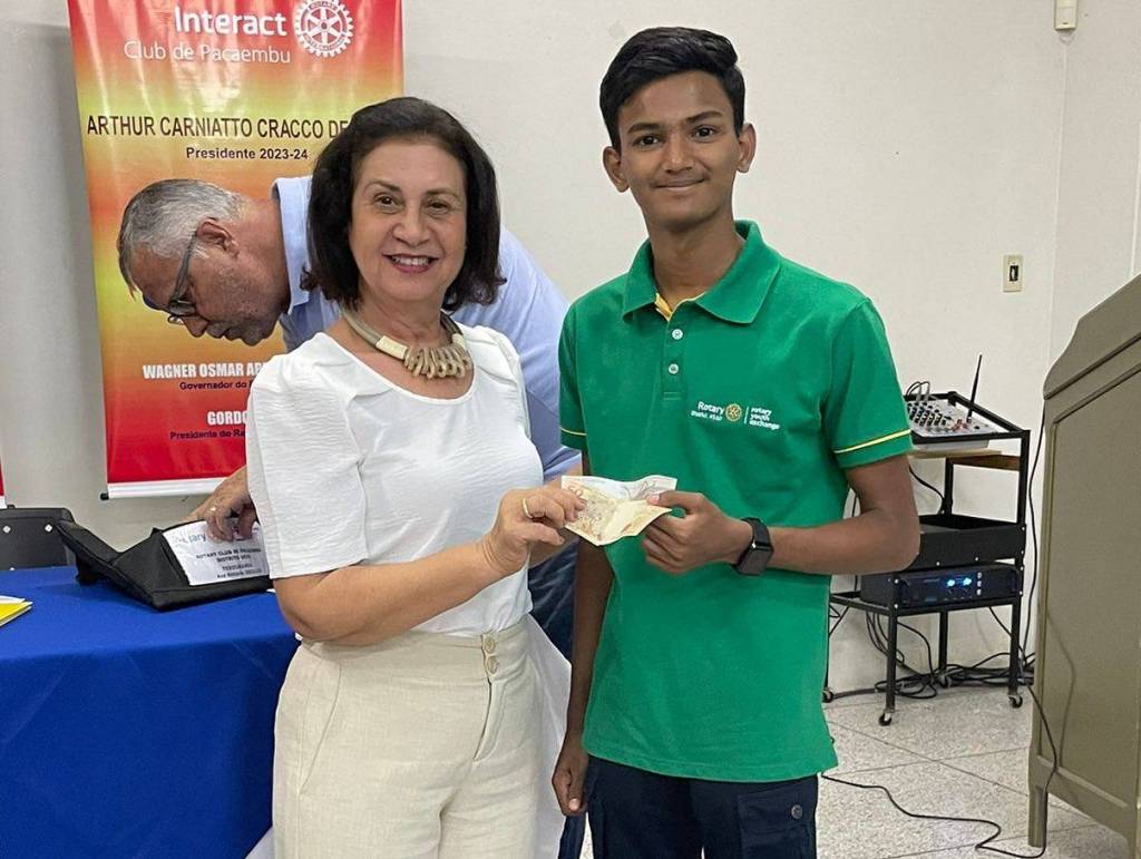 Para abrilhantar mais a noite o nosso intercambista indiano recebendo sua mesada.