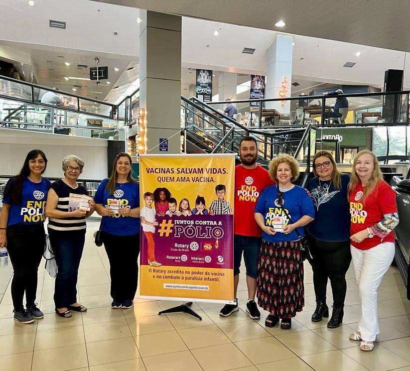 O Rotary Club de Marília-Pioneiro reafirma seu compromisso contínuo com a erradicação da poliomielite ao panfletar sobre a multivacinação no Esmeralda Shopping, um dos principais centros comerciais de Marília e ao Colégio Criativo, na campanha "Juntos Contra a Pólio". Sob a liderança da Coordenadora de Projetos Humanitários, Marília Pollon, essa ação estratégica tem como missão conscientizar e mobilizar a comunidade local em prol da vacinação contra a poliomielite.