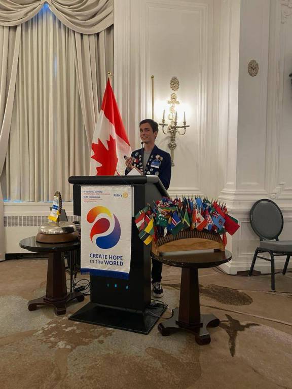 O jovem @a.steque apresentou-se no Rotary o qual é anfitrião de sua ida ao Canadá. 🍁