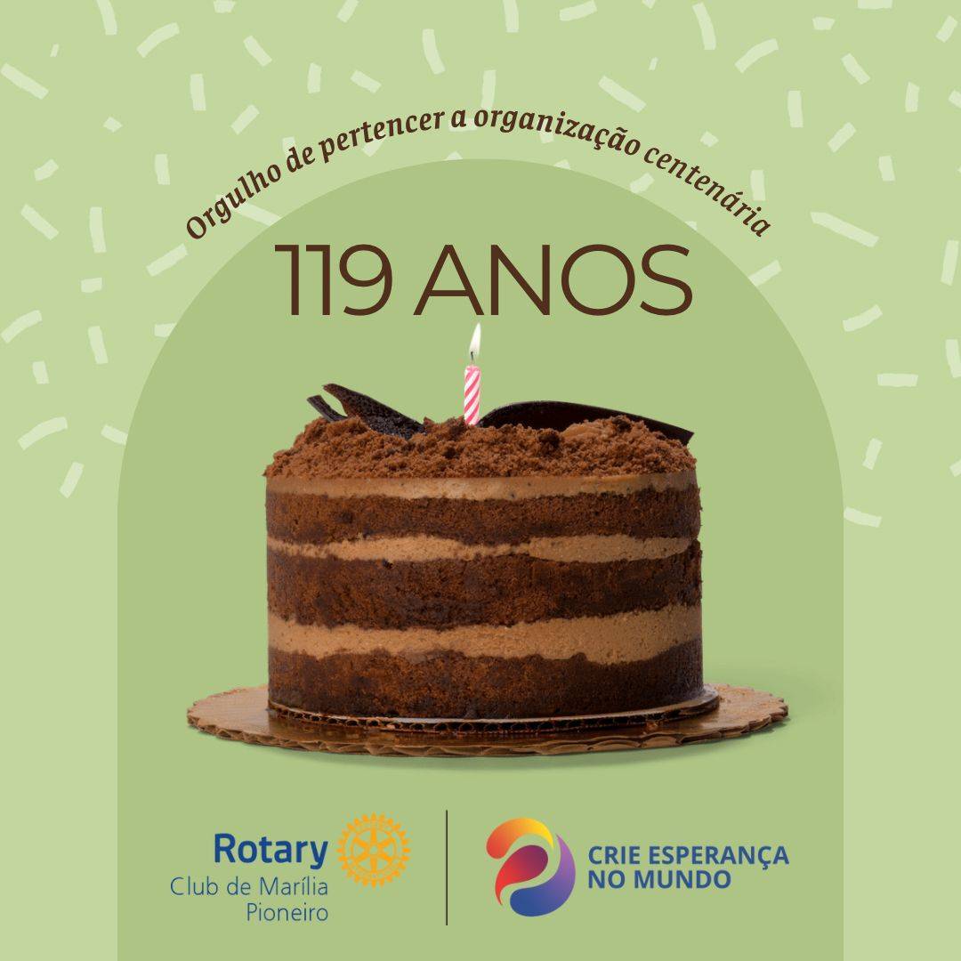 Parabenizamos o Rotary Internacional pelos seus 119 anos de história, projetos, doações, voluntariado e inspiração para um mundo melhor.