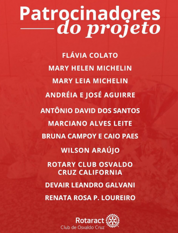 Os presentes foram entregues às crianças na Casa da Criança Ruth Wirth. A equipe do Rotaract agradece os seguintes patrocinadores do projeto: