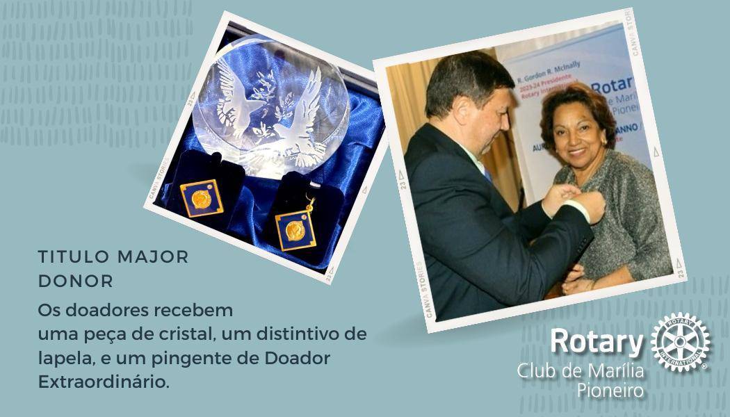 💠O Rotary Club de Marília-Pioneiro tem a honra de reconhecer suas associadas fundadoras que, ao longo de 28 anos de dedicação ao clube, fizeram doações extraordinárias de US$ 10.000,00 cada à The Rotary Foundation Of Rotary International, sendo agraciadas com o prestigiado título de Major Donor.