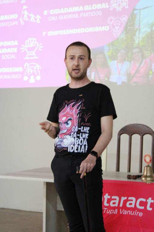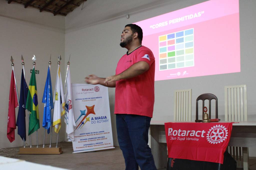 Protocolo 📋 - Lucas Moraes, do Rotaract Club de Pacaembu Terra Boa, abordou as melhores práticas e procedimentos protocolares essenciais para o bom funcionamento das reuniões e eventos.