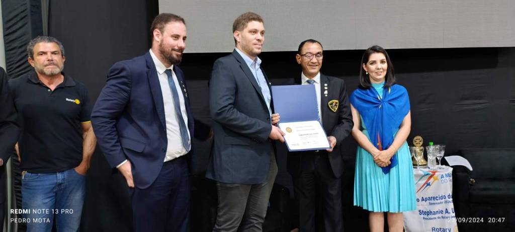 Em seguida as 20:00 horas ocorrerá a reunião festiva de visita oficial, onde na ocasião o Rotary Club de Assis-Norte, presidido pelo Cp. Mateus Milk Del Massa e Denise, entregará 02(dois) titutlos PAUL HARRIS aos Companheiros: Elvis da Silva e Bruno Logar, e também 1 SAfira para o Cp. Volney Delfino da Silva.