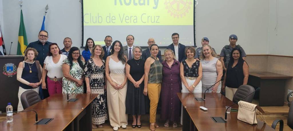 Os rotarianos que fazem parte do Rotary Club de Vera Cruz, no Distrito 4510 do Rotary International, foram homenageados na última sexta-feira, dia 21, pela Câmara Municipal daquela cidade. A homenagem faz parte das celebrações dos 120 anos de fundação da criação do Rotary International no Mundo, enquanto que na cidade de Vera Cruz são 63 anos de atividades na comunidade. A sessão solene atende a Lei Municipal de n° 2.747 de 04 de maio de 2010, e contou com a presença do Governador do Distrito 4510 do Rotary International, o advogado Ricardo Reis, associado ao Rotary Club de Tupi Paulista. “Foi uma cerimônia em que procuramos destacar a importância do Rotary na comunidade vera-cruzense”, disse a presidente da Câmara Municipal de Vera Cruz, a vereadora Cristiane Aparecida Tinetti, que também está como presidente do Rotary Club de Vera Cruz, na Gestão 2024-25.