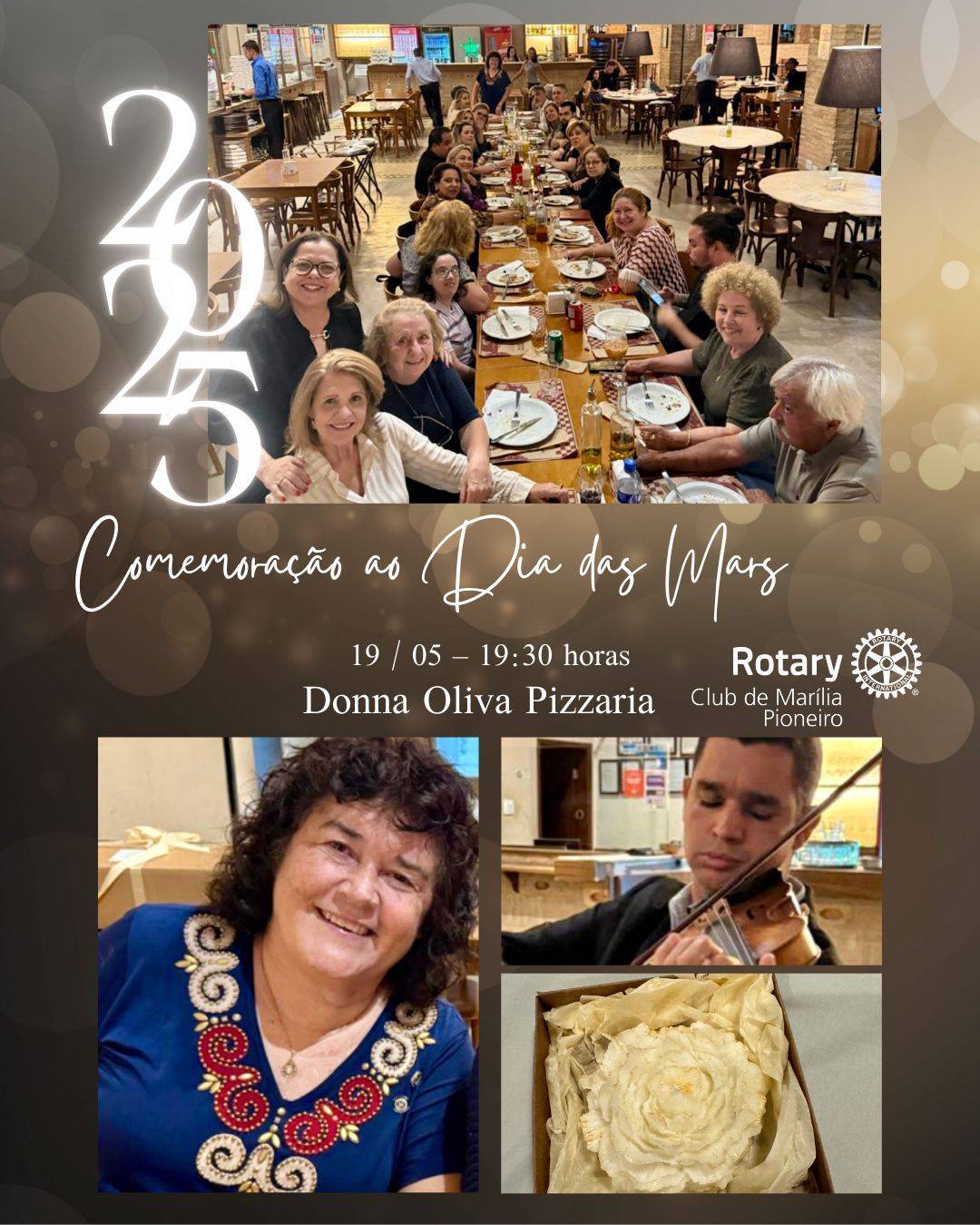 🌷Na noite de ontem, o Rotary Club de Marília-Pioneiro celebrou o Dia das Mães com um encontro especial na Pizzaria Donna Oliva. Foi uma noite marcada pelo companheirismo, pelo carinho e por momentos inesquecíveis ao lado de nossos associados e seus familiares.